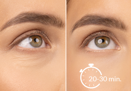 蕴含胶原蛋白、视黄醇、神经酰胺与维生素C的膜布配方,提供全面抗衰滋养。初次使用即刻深 层补水,肌肤更平滑紧致。持续使用有助淡化黑眼圈与眼袋,提升肌肤弹性,亮泽眼周,呈现堪 比中胚层疗法或碳酸疗法的年轻光彩,焕发神采奕奕的青春明眸。